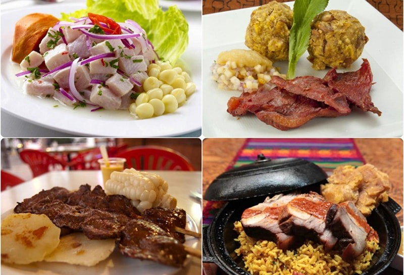 La cocina peruana es muy variada y condimentada. Algunos de nuestros platos típicos son: el “cebiche” (pescado cocido en zumo de limón), “ají de gallina” (pollo deshilachado cocido en una salsa hecha a base de leche y ají) y anticuchos (pedazos de carne o corazón de res ensartados en un palo de madera y cocidos al carbón), además de los típicos de cada región.